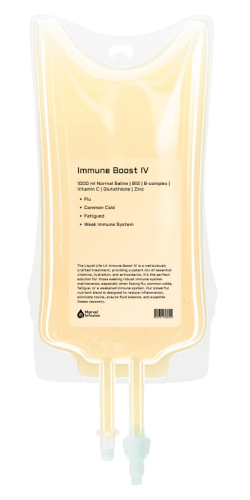 Our Cold and Flu IV Treatment is a tailored solution for those seeking a fast and effective method to bolster their immune system and alleviate flu symptoms. Packed with essential vitamins like B12, Vitamin C, and minerals like Zinc, our flu IV therapy ensures your body receives the crucial nutrients for a robust immune response and quick recovery.