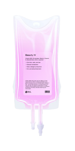 Beauty IV Drip - the ultimate solution for revitalizing your skin, hair, and nails. Our powerful combination of fluids, vitamins, and antioxidants works quickly to strengthen and detoxify the body, while also restoring your natural glow.